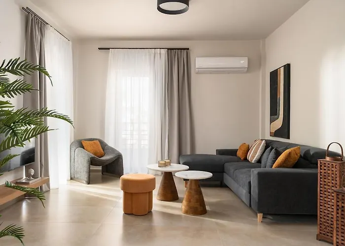 The spacious 2-bedroom Nea Chora Boutique Apartment Chania is situated nearly a 5-minute walk from the 2,000 Years Old Tree and 20 km from Souda airport.